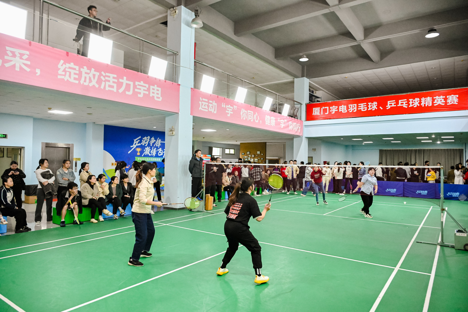 賽場顯身手,健兒爭榮耀。2025年元旦,正逢冬日暖陽天,“乒羽爭鋒,激情飛揚(yáng)”宇電精英球賽拉開帷幕。參賽員工活力四射,啦啦隊熱情洋溢,有對抗、有激情、有溫度。宇電新年運(yùn)動盛會 火熱上演啦! 2025 年宇電元旦“迎新”運(yùn)動會熱情開燃 新年第一天,宇電人最愛的兩個項目——乒乓球單打、羽毛球雙打同時火熱開賽。裁判和參賽人員就位后,比賽正式開始!強(qiáng)者爭鋒誰可奪魁?快隨我們一起欣賞選手們的熠熠風(fēng)采吧!2025 宇電運(yùn)動會精彩現(xiàn)場自2006年喬遷宇電科技大廈,宇電每年都會舉辦乒乓球、羽毛球賽。今年,活動現(xiàn)場更加火熱。比賽掀起陣陣熱潮,掌聲、吶喊聲此起彼伏?!居鹈虮荣惉F(xiàn)場】比賽正式開始后,參賽運(yùn)動員們個個精神抖擻,目光堅毅緊盯著來回穿梭的羽毛球。搓球、撲球、吊球、扣殺!運(yùn)動員們紛紛亮出 “拿手” 球技,比技巧、拼體力各展其能、釋放出強(qiáng)勁實力。每一次攻防換位,隊友都是彼此堅強(qiáng)的保障,每一場比拼都是